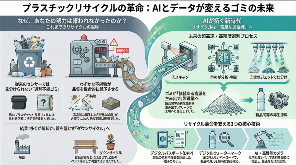 データ、AI、そして新しいセンサー技術という3つの知性が揃ったことで、リサイクルは「選別不能なゴミ」を「新品と全く同じ品質の資源」に変えることが現実となっています。
